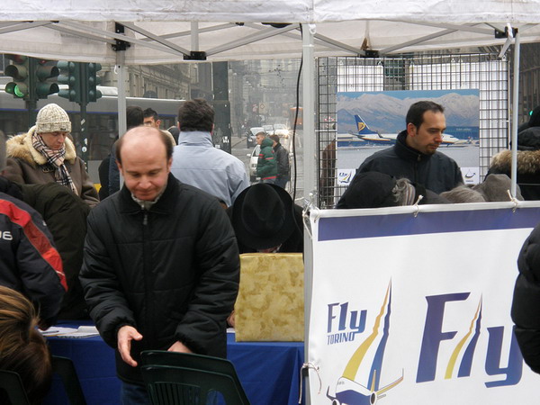 Sabato 31 gennaio, nella splendida cornice di Piazza Castello, si è svolto “Volare low cost da Torino – 1° Ryanair day”, il primo evento pubblico organizzato da FlyTorino sotto lo slogan Mettiamo le Ali a Torino che farà da contorno a tutte le attività associative per il 2009.